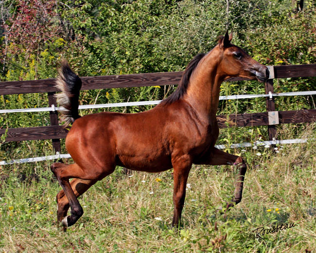 This is a very beautiful chestnut daughter of ROL Intencyty out of an El Ghazi daughter. This cross has given us wonderful English Pleasure candidates with long, well set necks, and tons of trot.